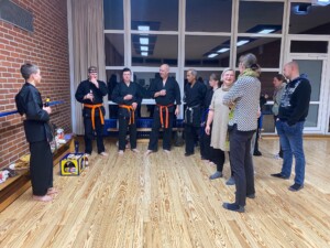 Die Prüfung begann pünktlich um 18 Uhr nach einer kurzen Vorbereitungszeit. Alle Prüflinge waren sehr konzentriert und diszipliniert. Sie zeigten sehr gute Leistungen, einen sicheren Basislauf, überzeugende Techniken, souveränes Keri-Waza (Tritte) und kraftvolle, dynamische Sifats/Katas (Formläufe).
