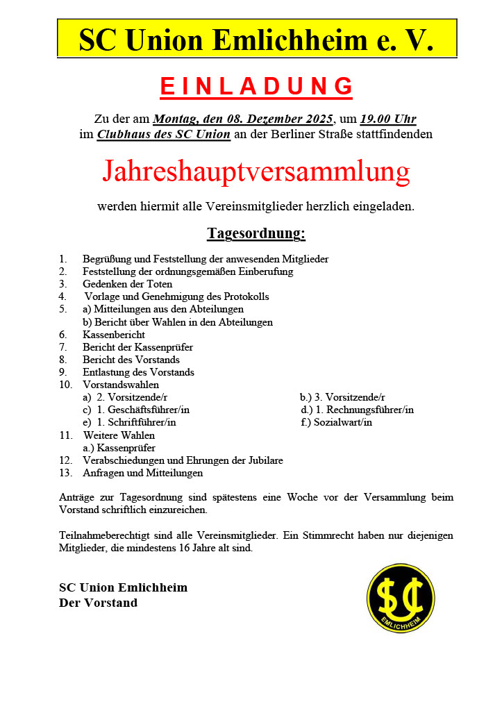 Teilnahmeberechtigt sind alle Vereinsmitglieder. Ein Stimmrecht haben nur diejenigen Mitglieder, die mindestens 16 Jahre alt sind.
